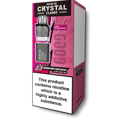 SKE Crystal Dragon Fruit Peach Melon CL6000 pods for use with the Crystal CL6000 device.